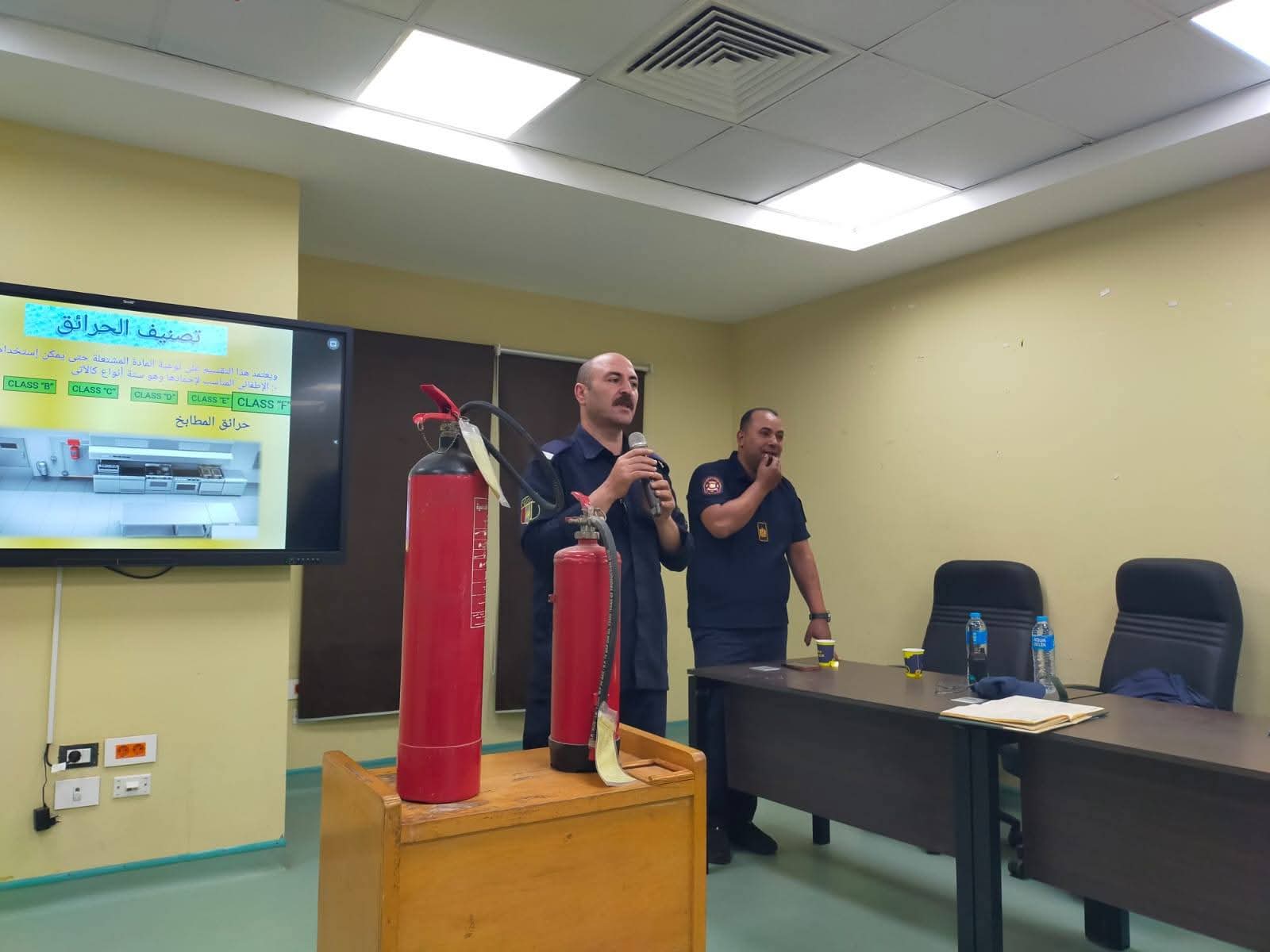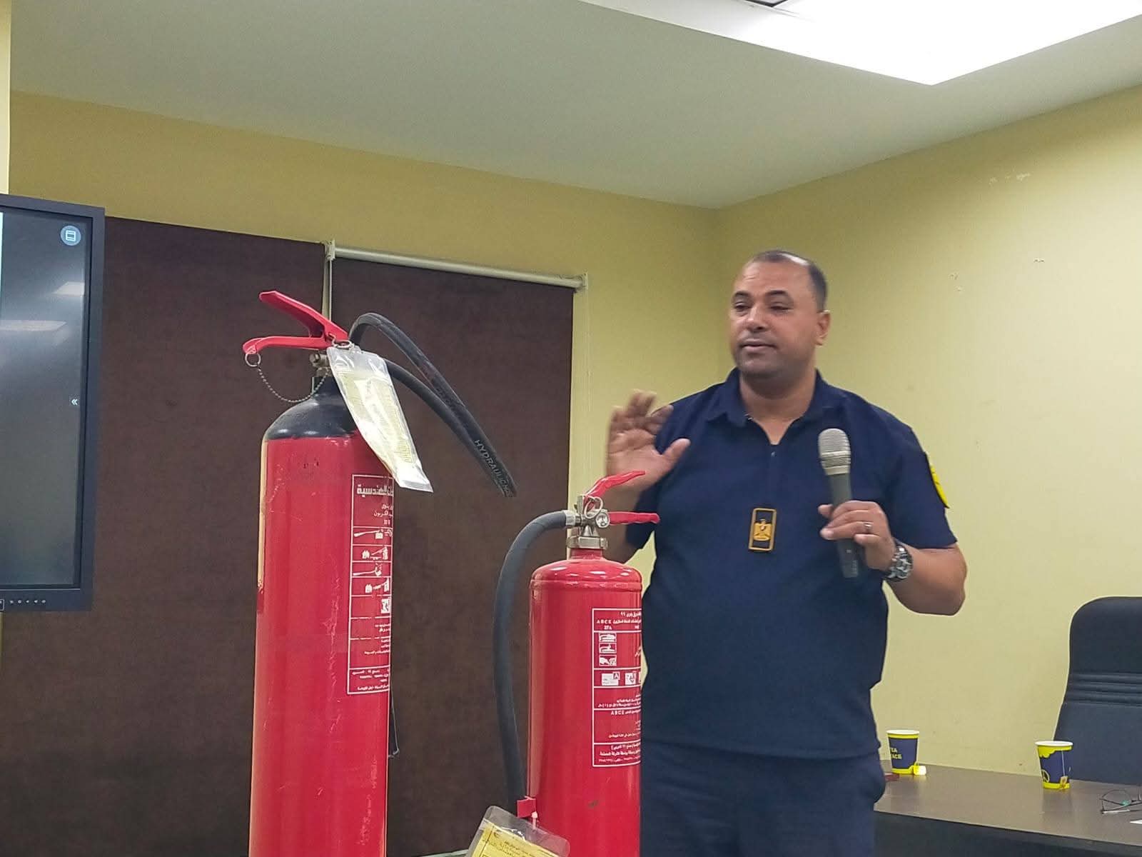 During the lecture, a detailed explanation was provided on the objective of civil protection, which is to safeguard lives and property. The session also covered types of fires, fire extinguishing equipment, and instructions on their proper use and maintenance.